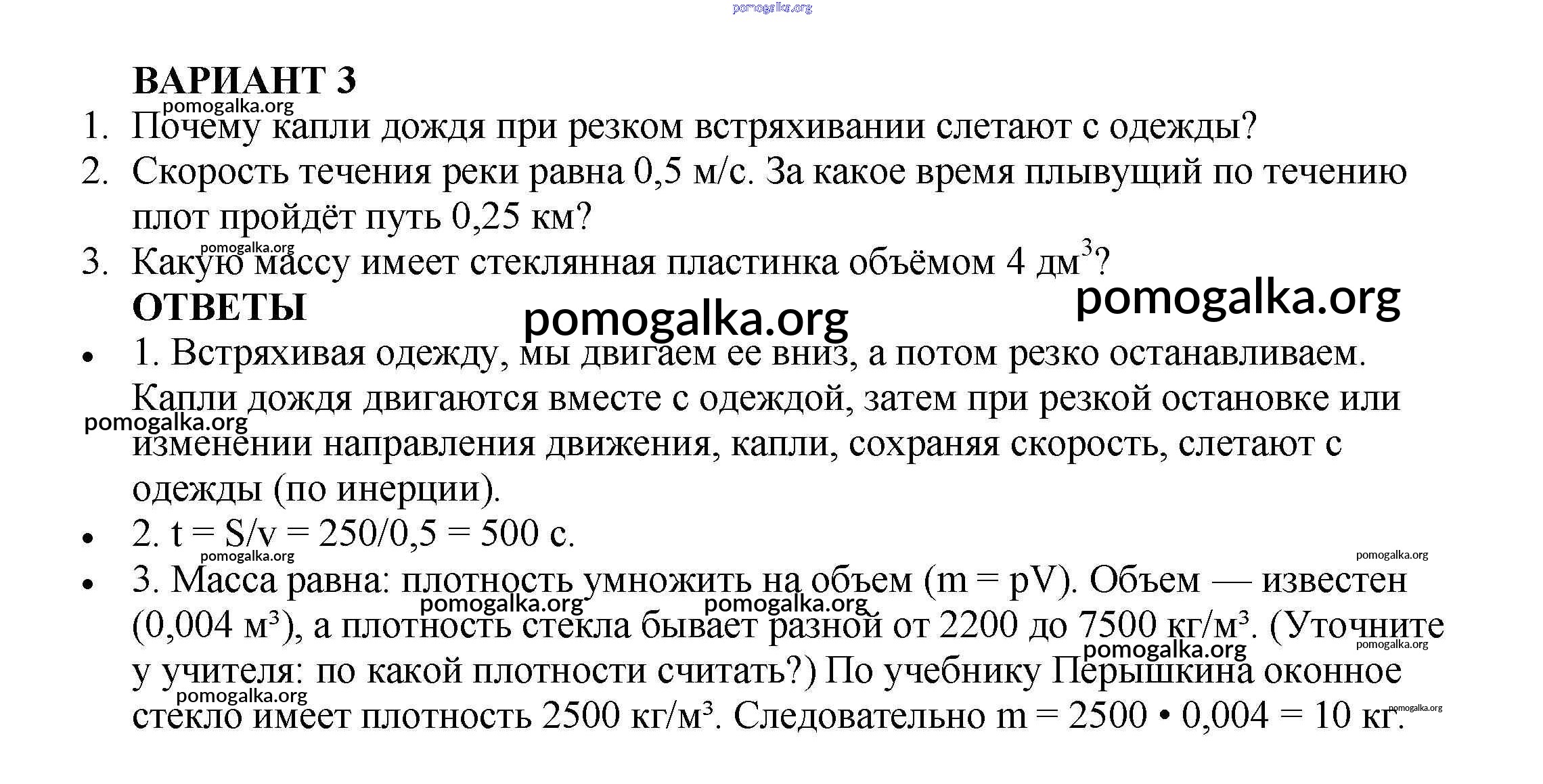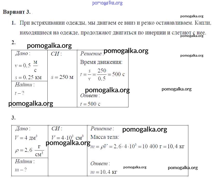 Готовые ответы - Физика 7 класс Самостоятельные и контрольные работы Марон А.Е. (к уч. Перышкина) - кр №-2. взаимодействие тел контрольная работа Вариант №3