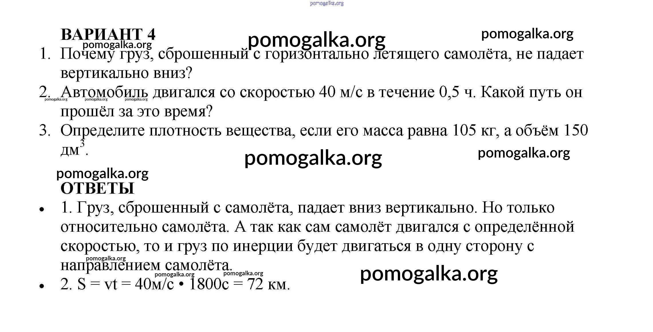 Готовые ответы - Физика 7 класс Самостоятельные и контрольные работы Марон А.Е. (к уч. Перышкина) - кр №-2. взаимодействие тел контрольная работа Вариант №4