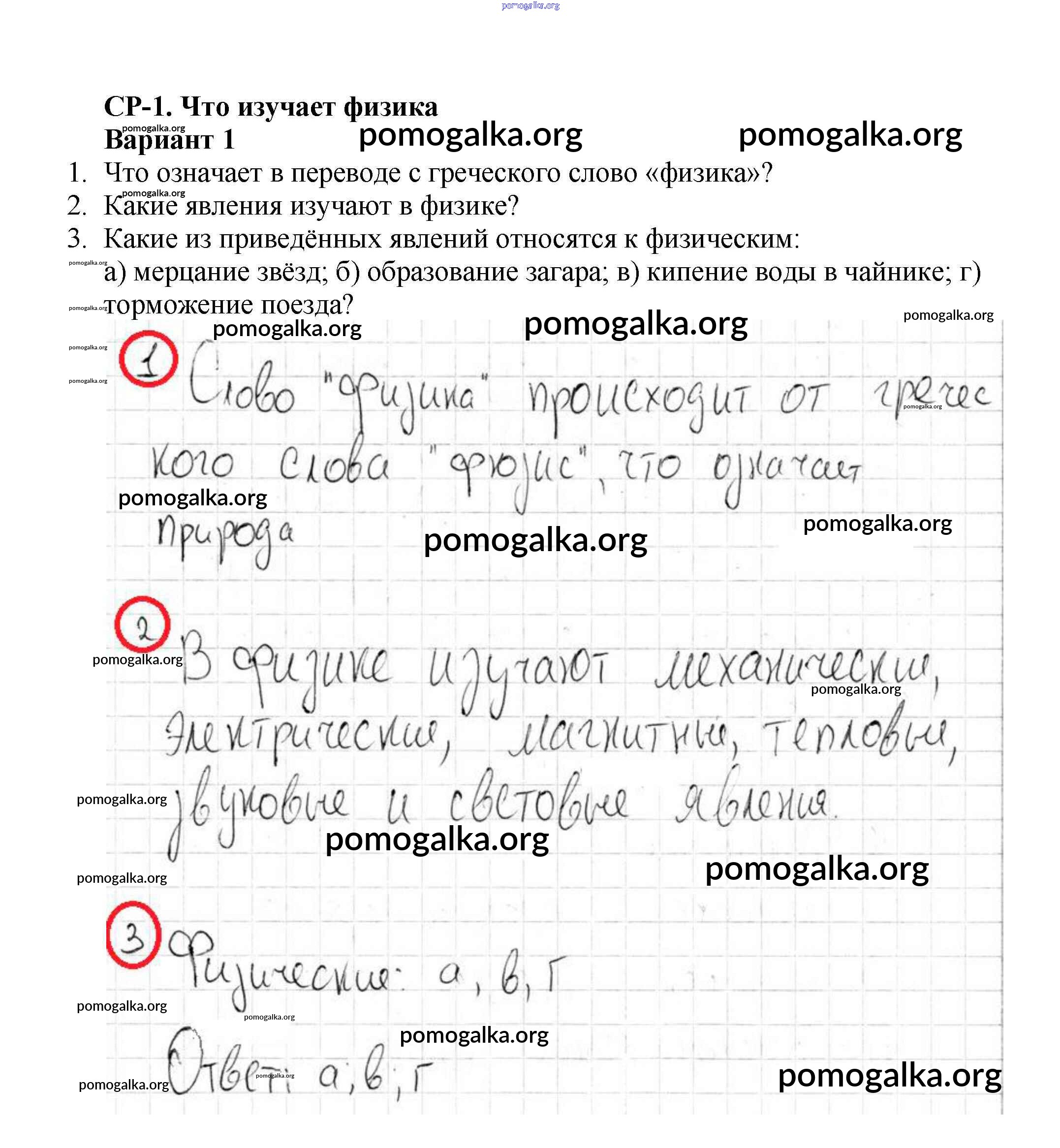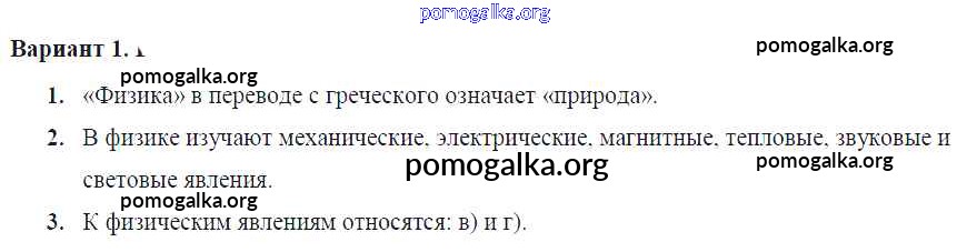 Готовые ответы - Физика 7 класс Самостоятельные и контрольные работы Марон А.Е. (к уч. Перышкина) - ср-№1. что изучает физика самостоятельная работа Вариант №1