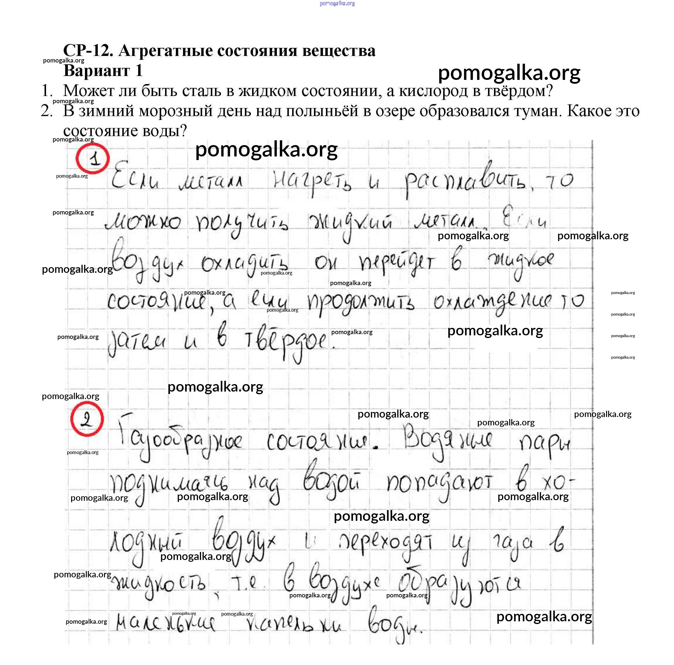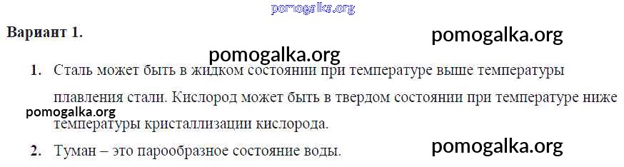Готовые ответы - Физика 7 класс Самостоятельные и контрольные работы Марон А.Е. (к уч. Перышкина) - ср-№12. агрегатные состояния вещества самостоятельная работа Вариант №1