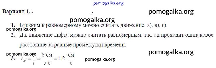 Готовые ответы - Физика 7 класс Самостоятельные и контрольные работы Марон А.Е. (к уч. Перышкина) - ср-№15. равномерное и неравномерное движение самостоятельная работа Вариант №1