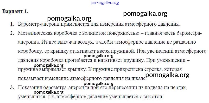 Готовые ответы - Физика 7 класс Самостоятельные и контрольные работы Марон А.Е. (к уч. Перышкина) - ср-№45. барометр-анероид самостоятельная работа Вариант №1