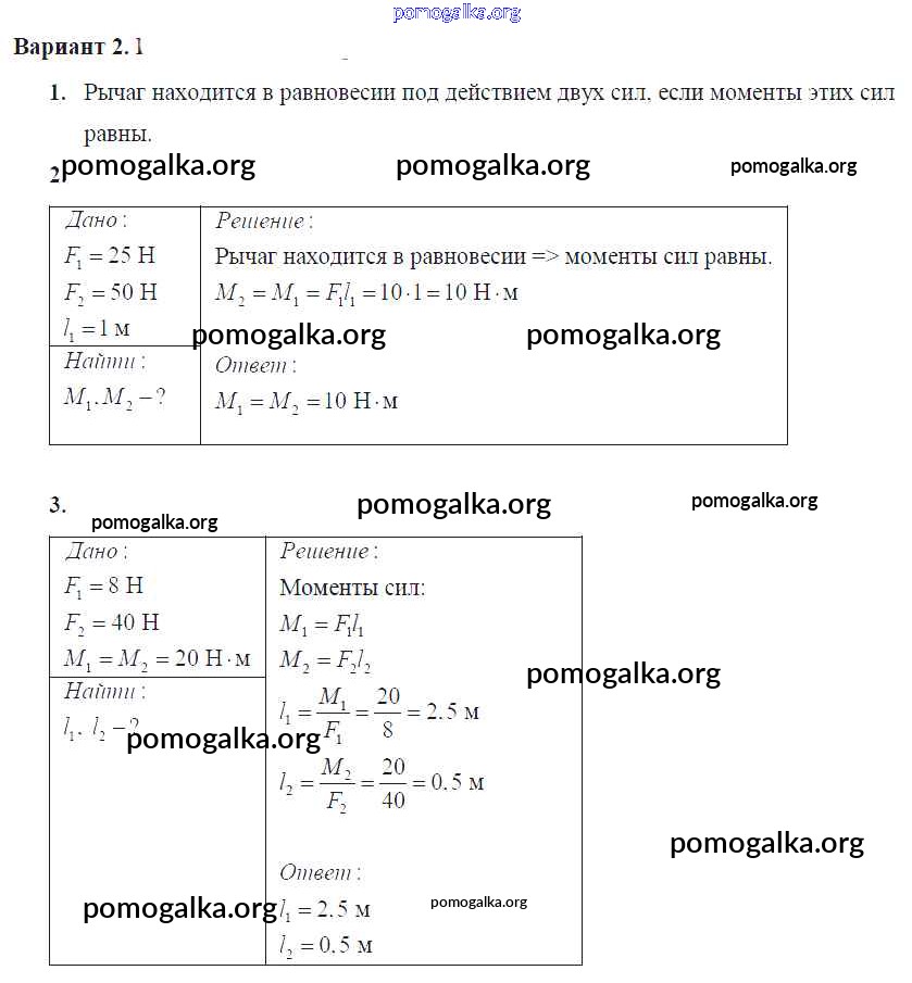 Готовые ответы - Физика 7 класс Самостоятельные и контрольные работы Марон А.Е. (к уч. Перышкина) - ср-№59. момент силы самостоятельная работа Вариант №2