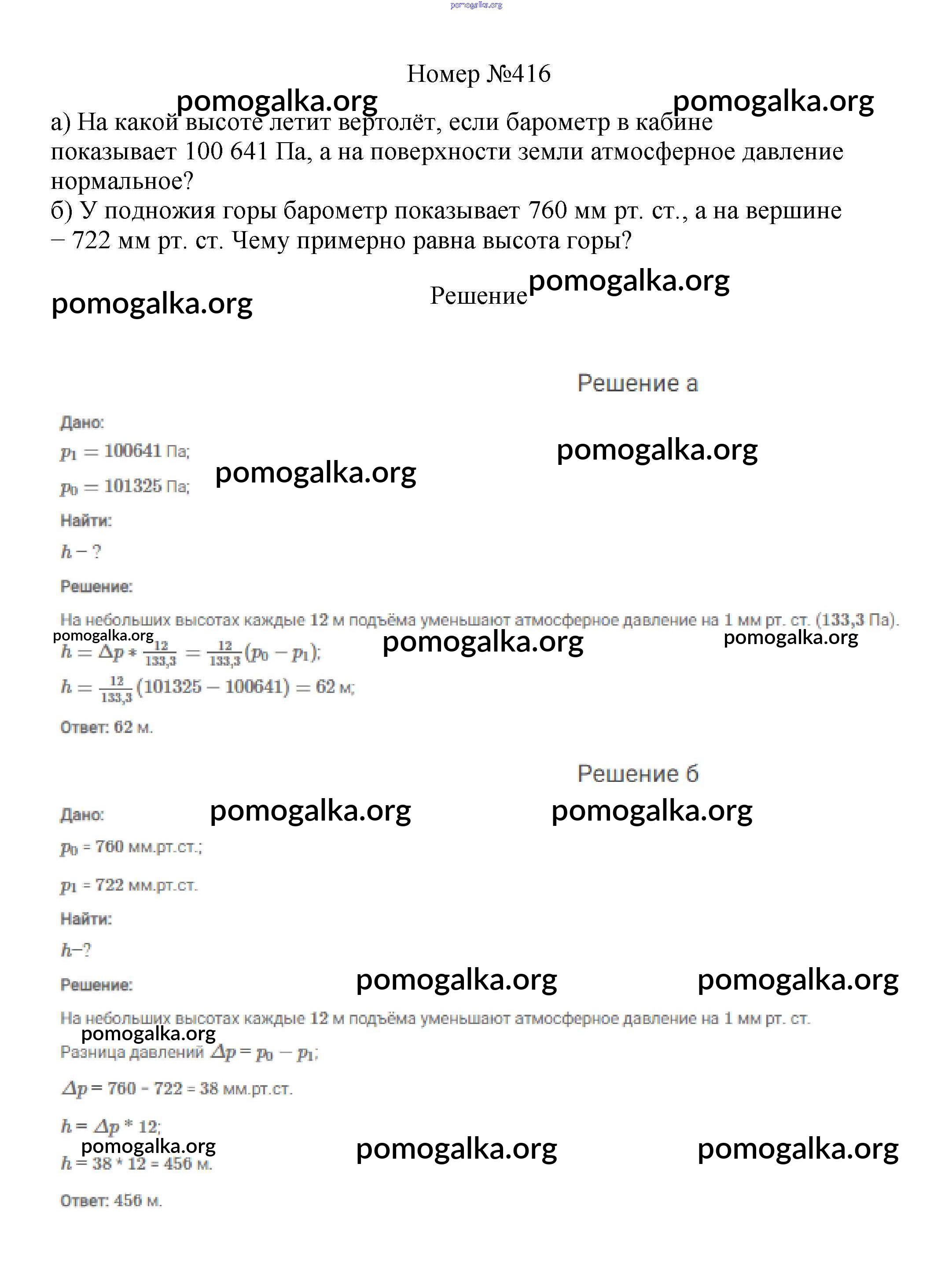 Готовые ответы - Физика 7-9 классы сборник вопросов и задач Марон А.Е. - 7 класс 416
