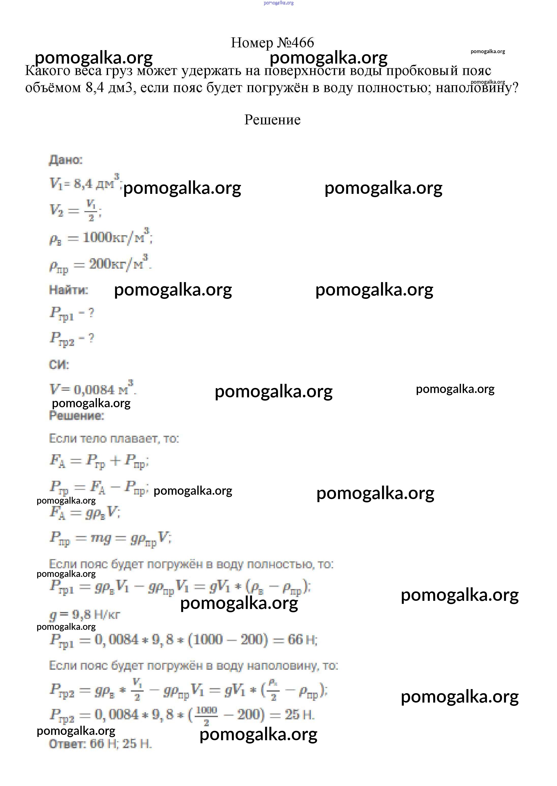 Готовые ответы - Физика 7-9 классы сборник вопросов и задач Марон А.Е. - 7 класс 466