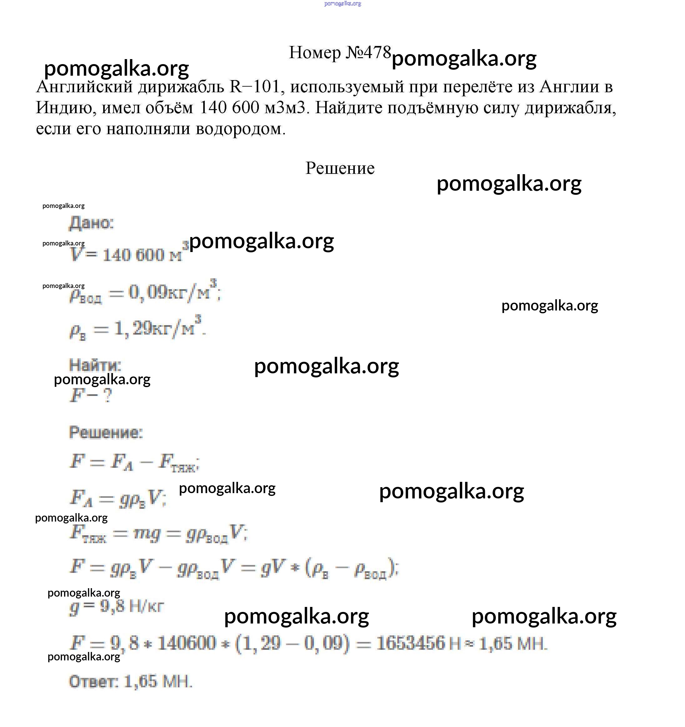 Готовые ответы - Физика 7-9 классы сборник вопросов и задач Марон А.Е. - 7 класс 478