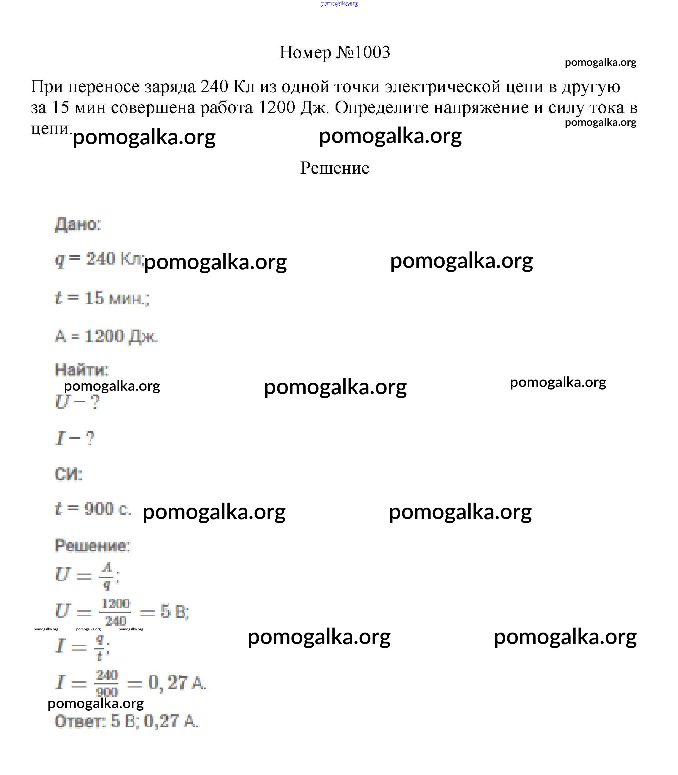 Готовые ответы - Физика 7-9 классы сборник вопросов и задач Марон А.Е. - 8 класс 1003