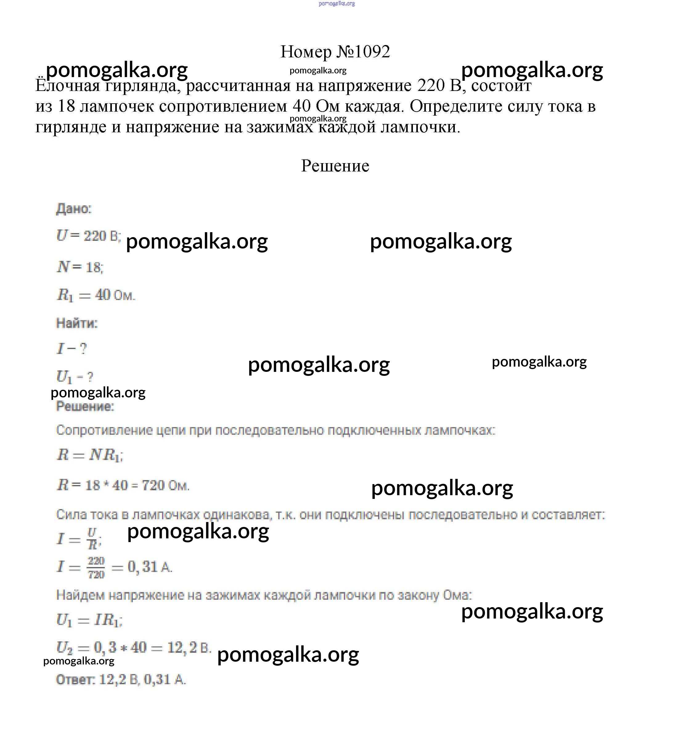 Готовые ответы - Физика 7-9 классы сборник вопросов и задач Марон А.Е. - 8 класс 1092