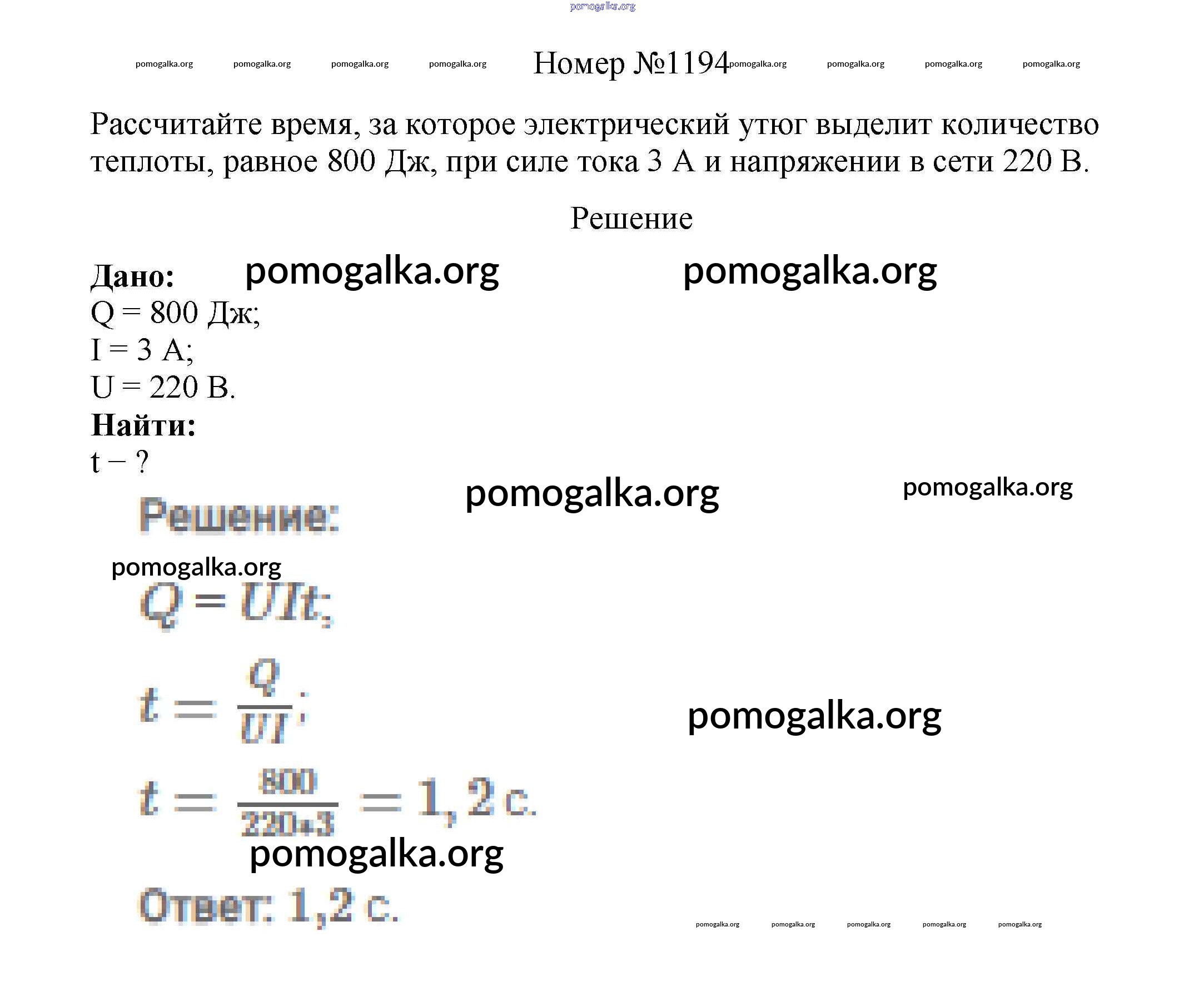 Готовые ответы - Физика 7-9 классы сборник вопросов и задач Марон А.Е. - 8 класс 1194