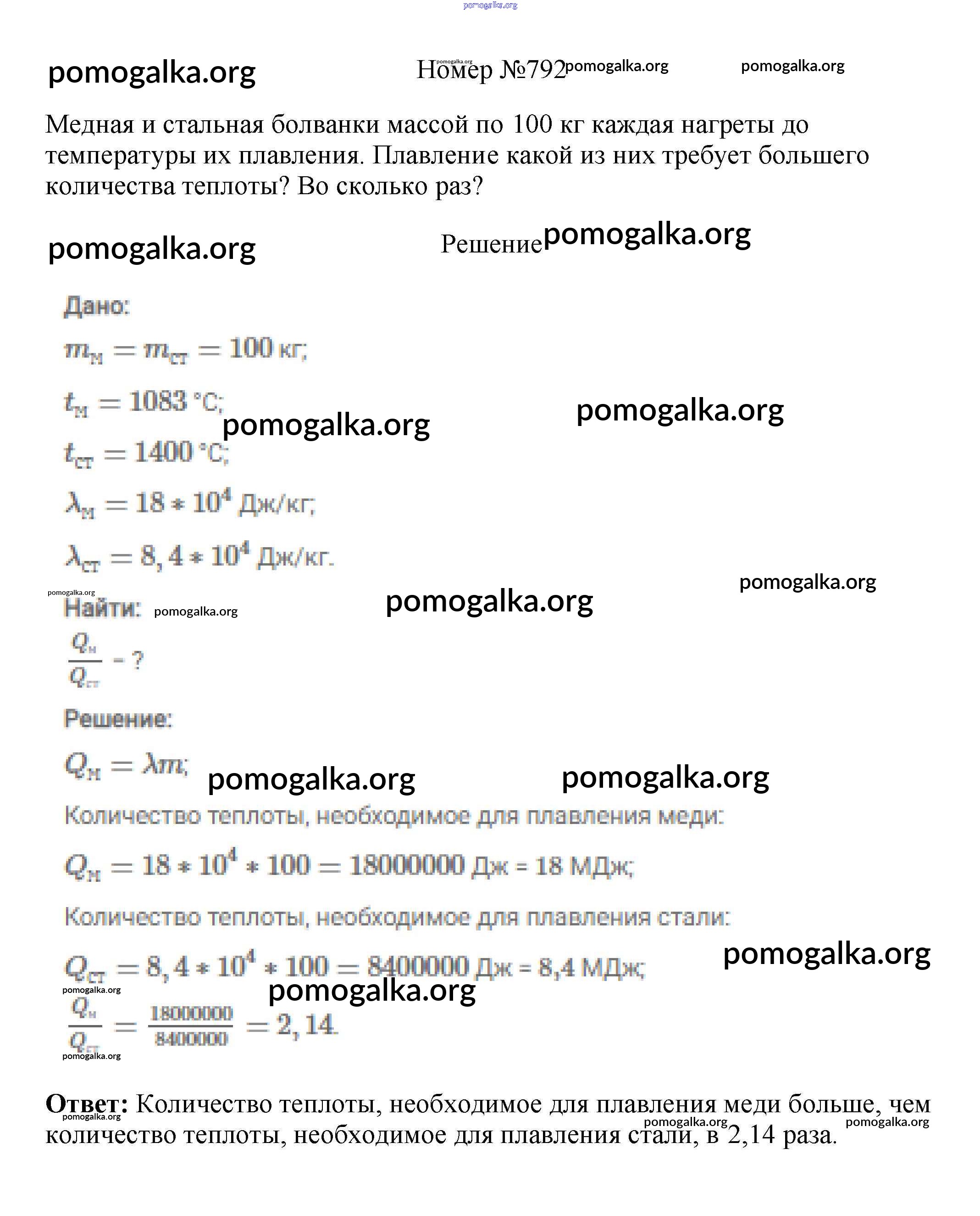 Готовые ответы - Физика 7-9 классы сборник вопросов и задач Марон А.Е. - 8 класс 792