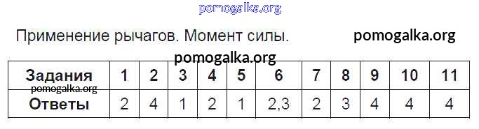 Готовые ответы - Физика 7 класс Тесты Чеботарева А.В. (к уч. Перышкина) - глава 4. работа и мощность Момент силы. Применение рычагов