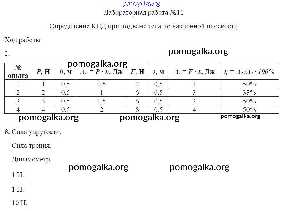 Готовые ответы - Физика 7 класс тетрадь для лабораторных работ Минькова Р.Д. (к уч. Перышкина) - лабораторная работа 11