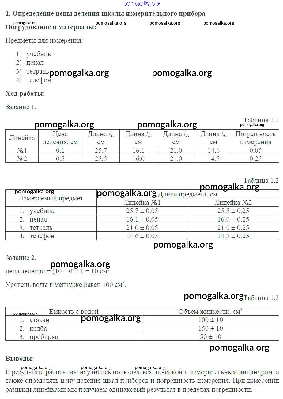 Готовые ответы - Физика 7 класс тетрадь-практикум Белага В.В. - ЛР 1