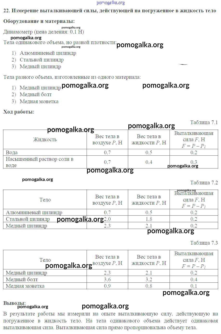 Готовые ответы - Физика 7 класс тетрадь-практикум Белага В.В. - ЛР 22