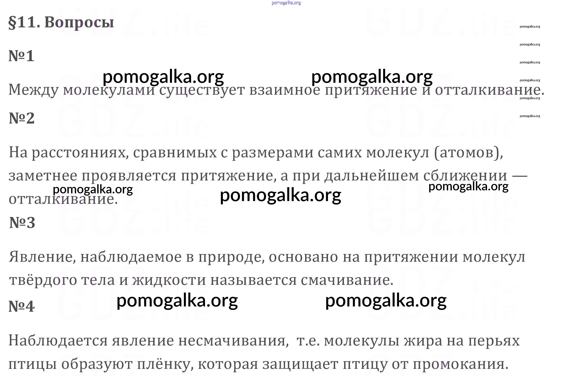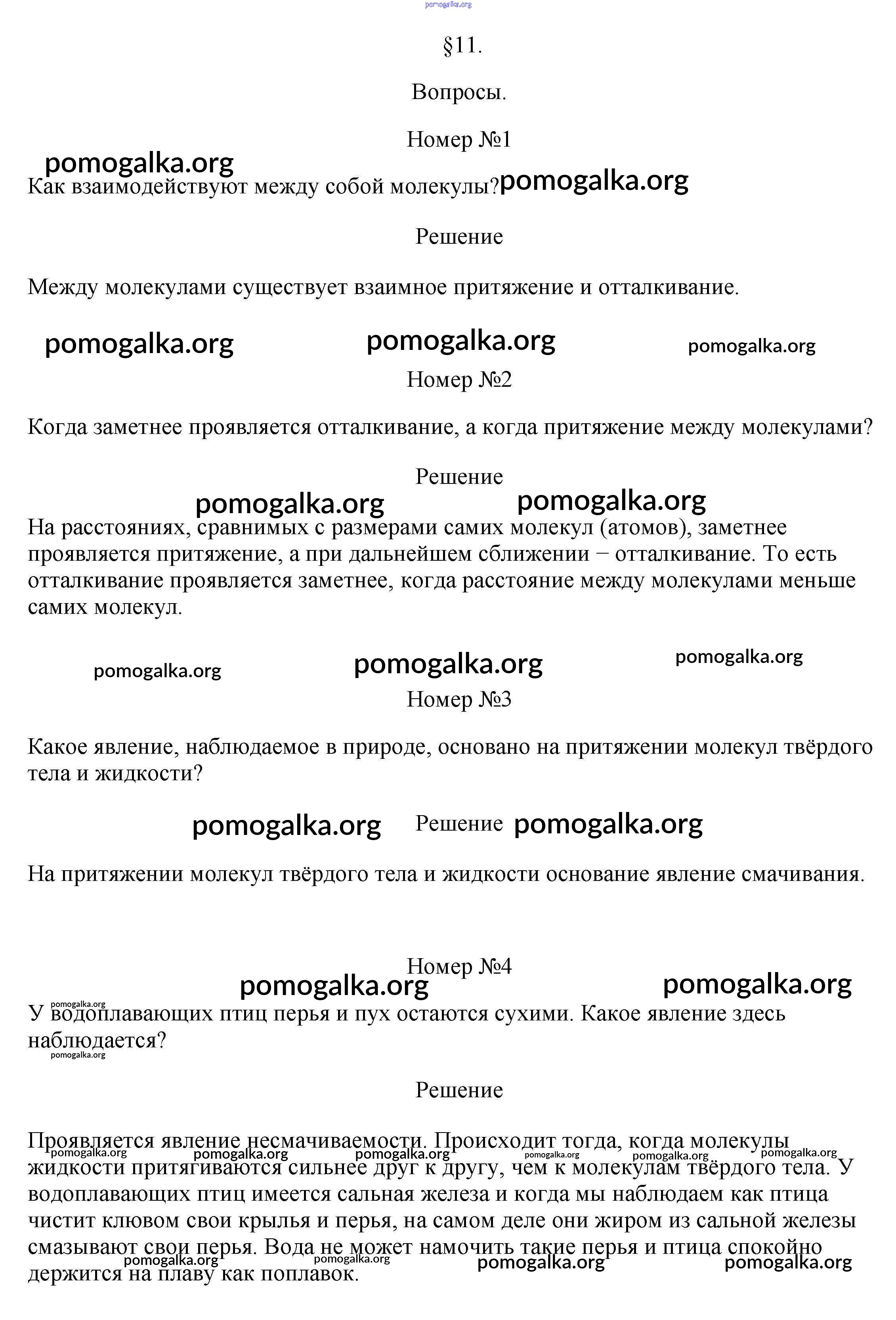 Готовые ответы - Физика 7 класс Перышкин А.В. - вопрос. параграф новое издание §11