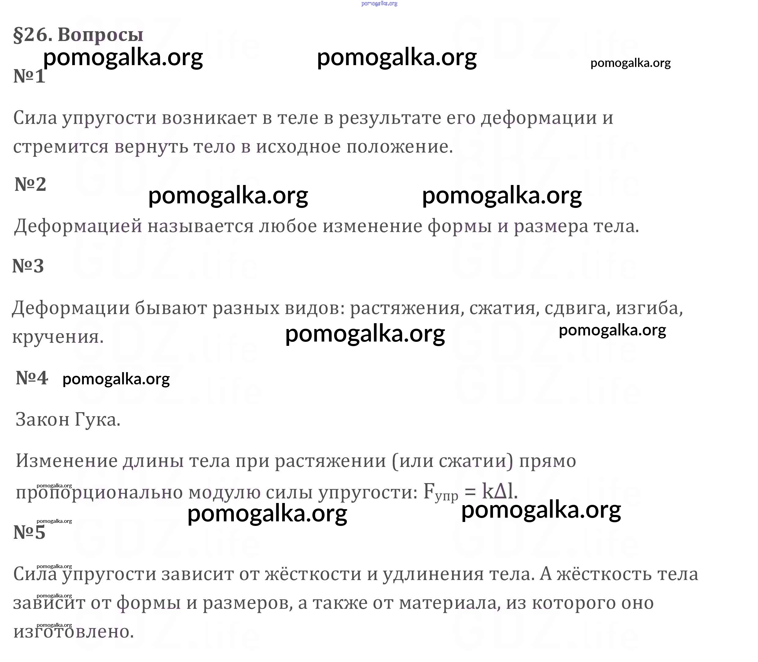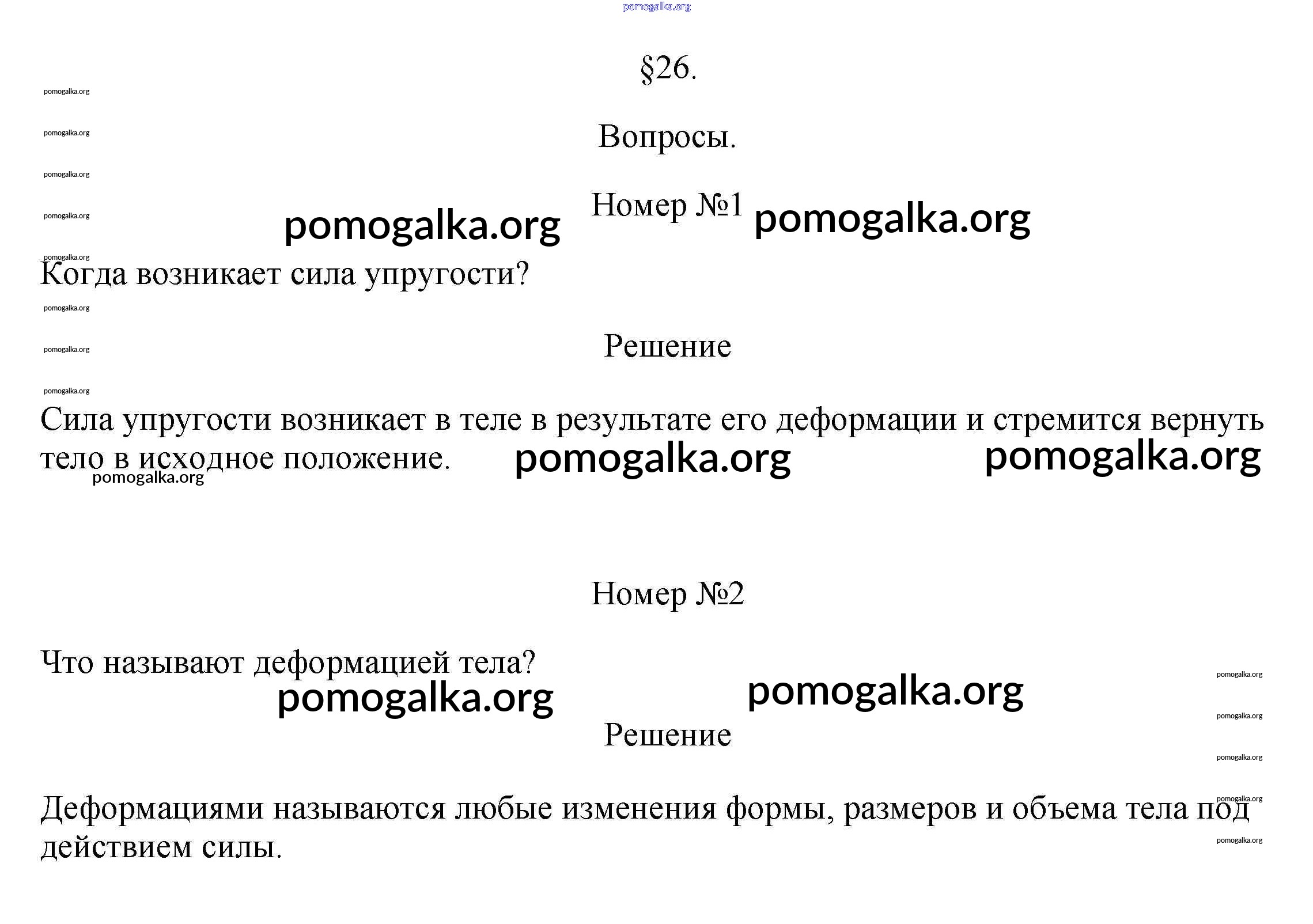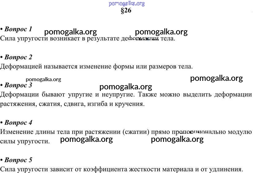 Готовые ответы - Физика 7 класс Перышкин А.В. - вопрос. параграф новое издание §26
