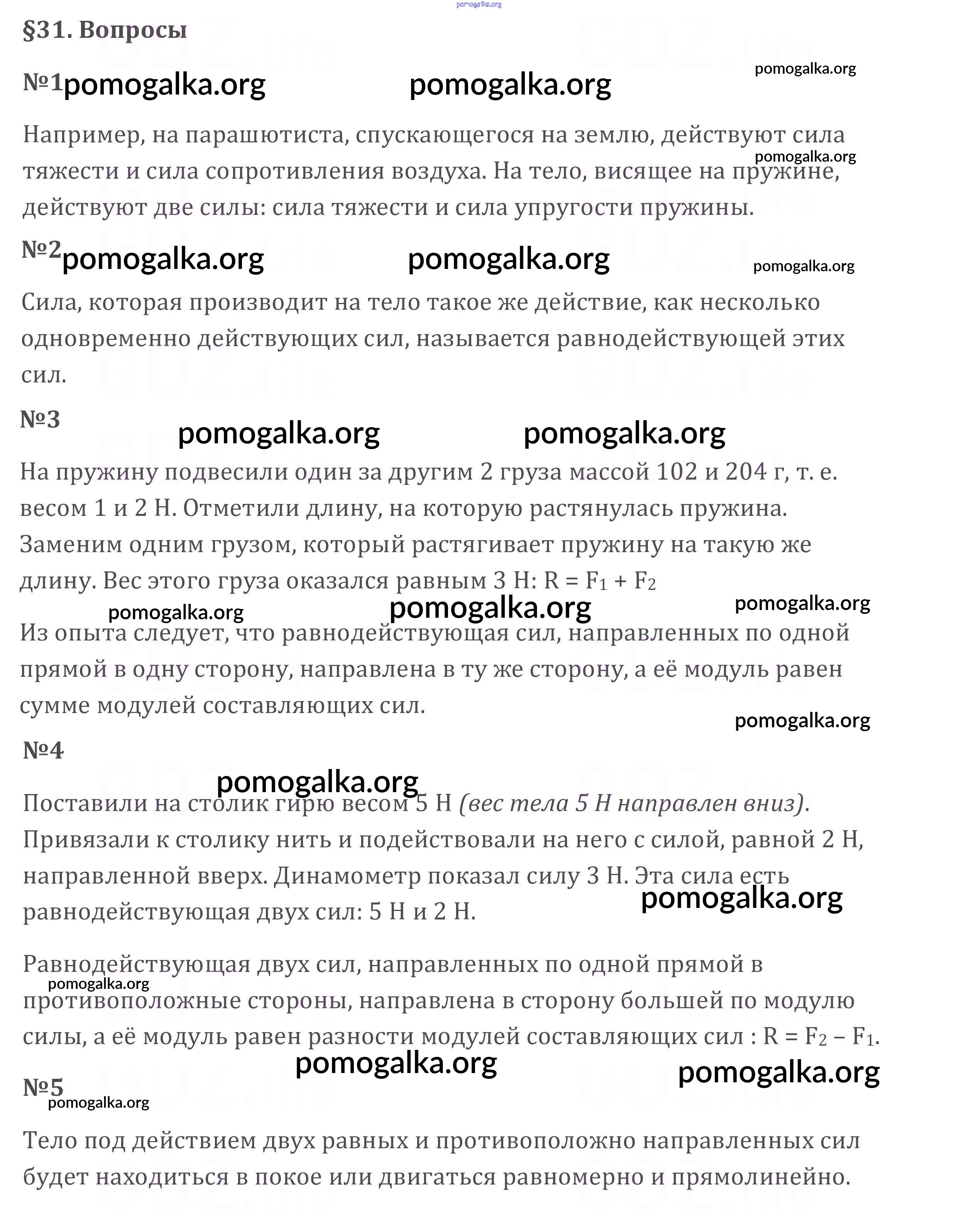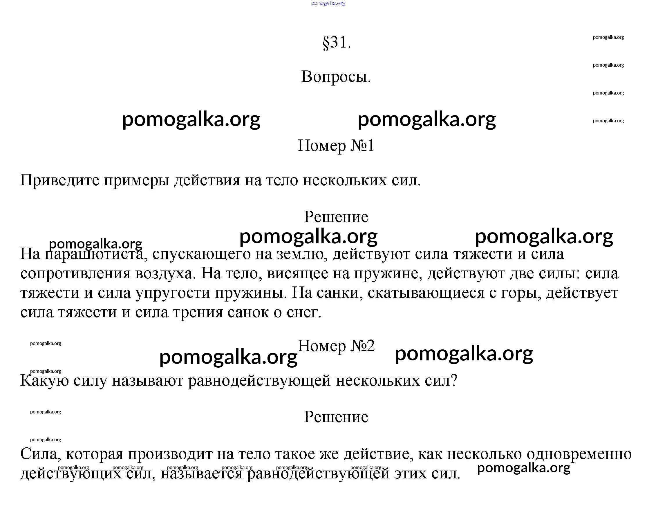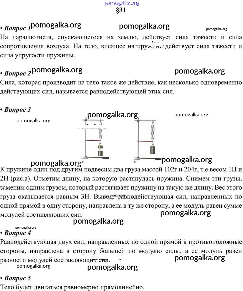Готовые ответы - Физика 7 класс Перышкин А.В. - вопрос. параграф новое издание §31