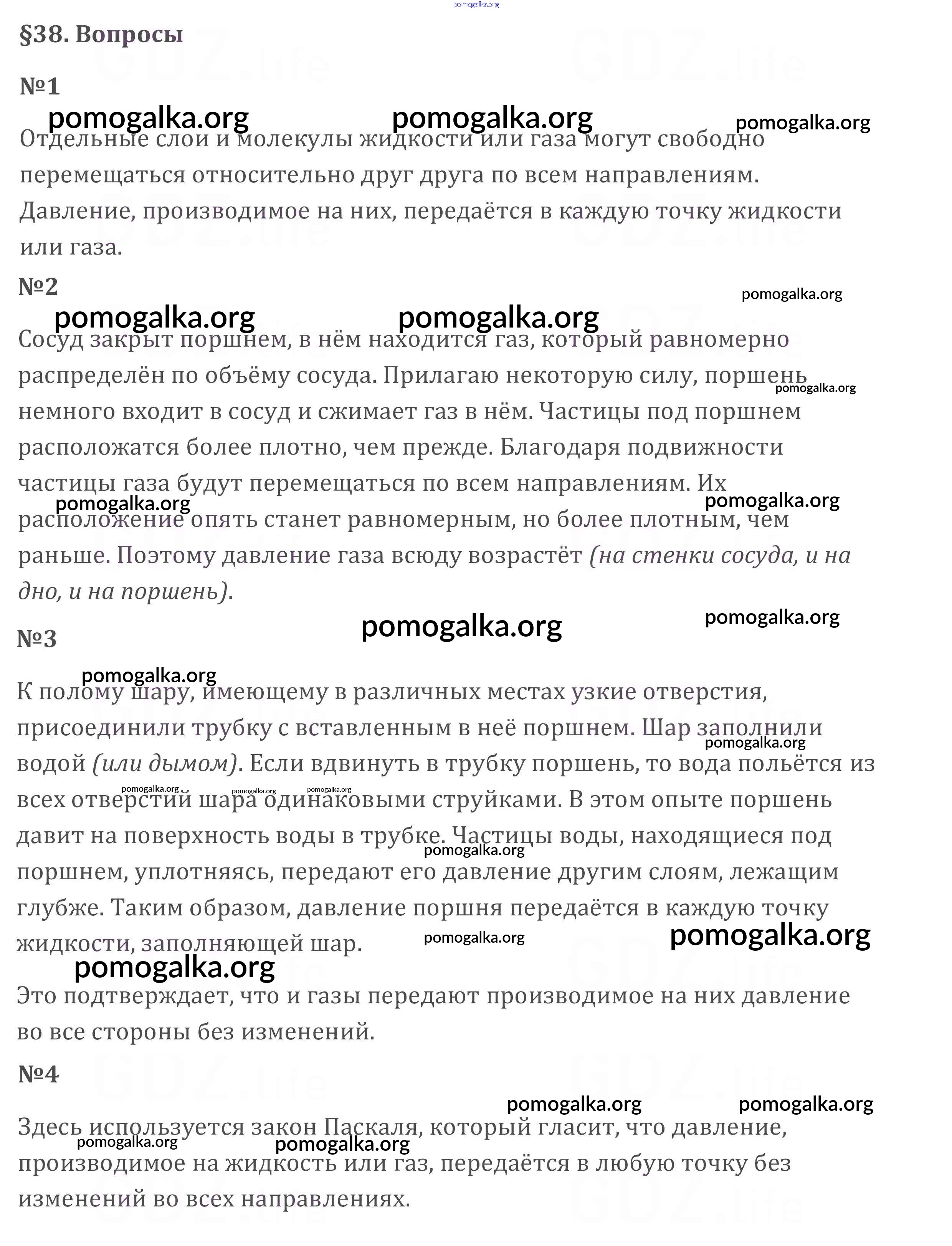 Готовые ответы - Физика 7 класс Перышкин А.В. - вопрос. параграф новое издание §38