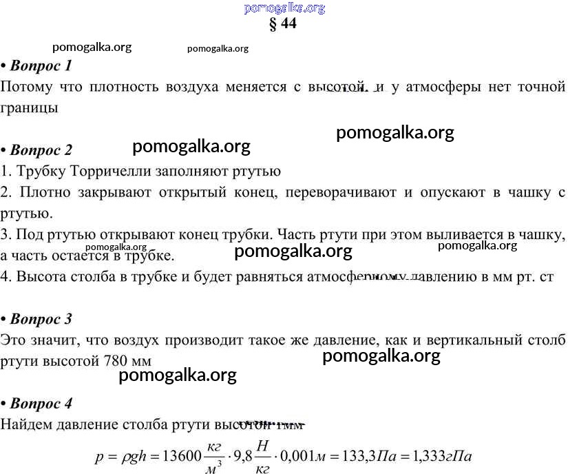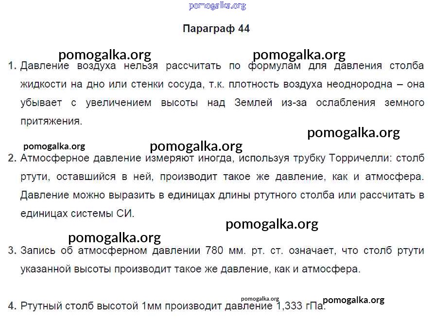 Готовые ответы - Физика 7 класс Перышкин А.В. - вопрос. параграф новое издание §44