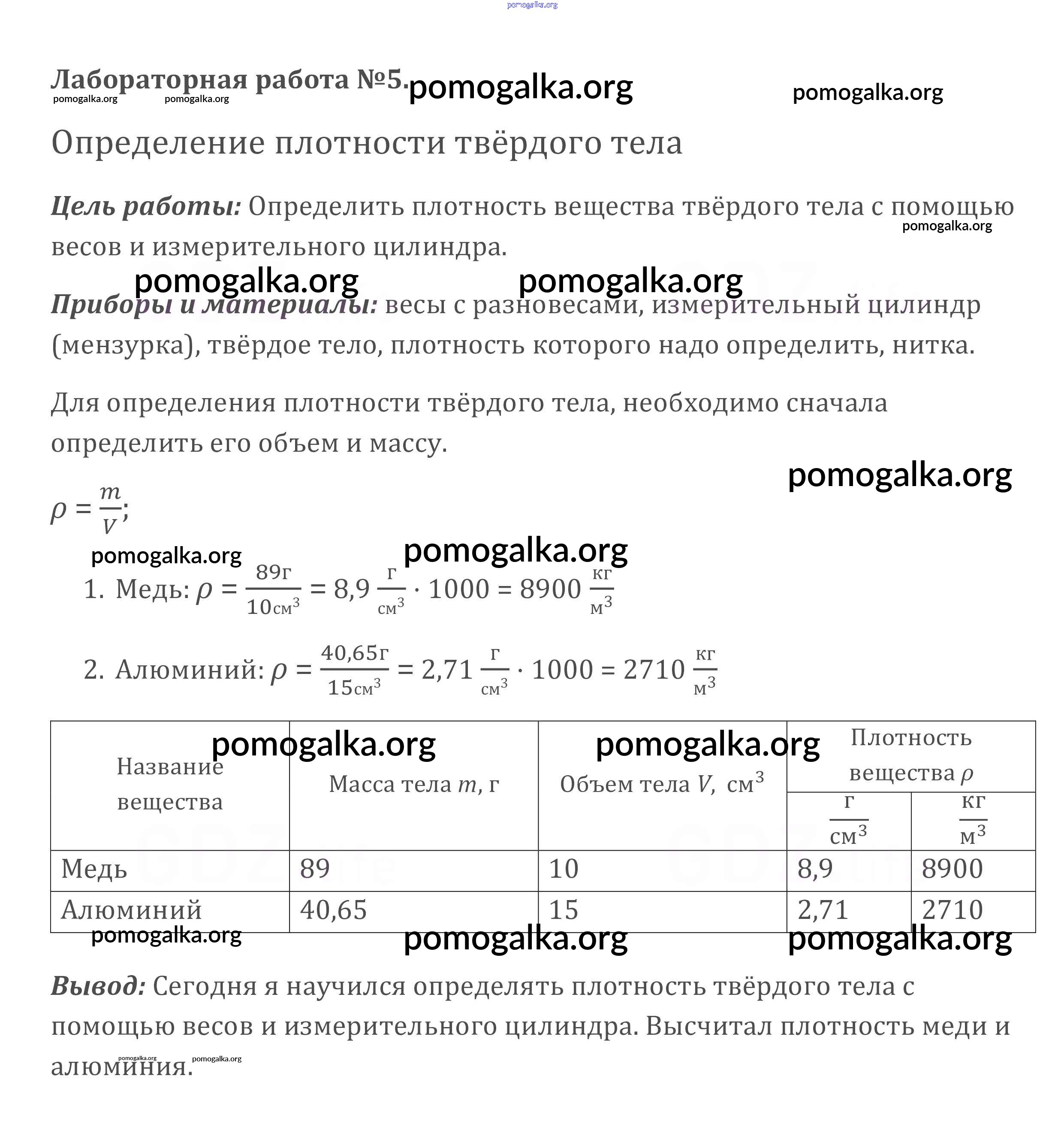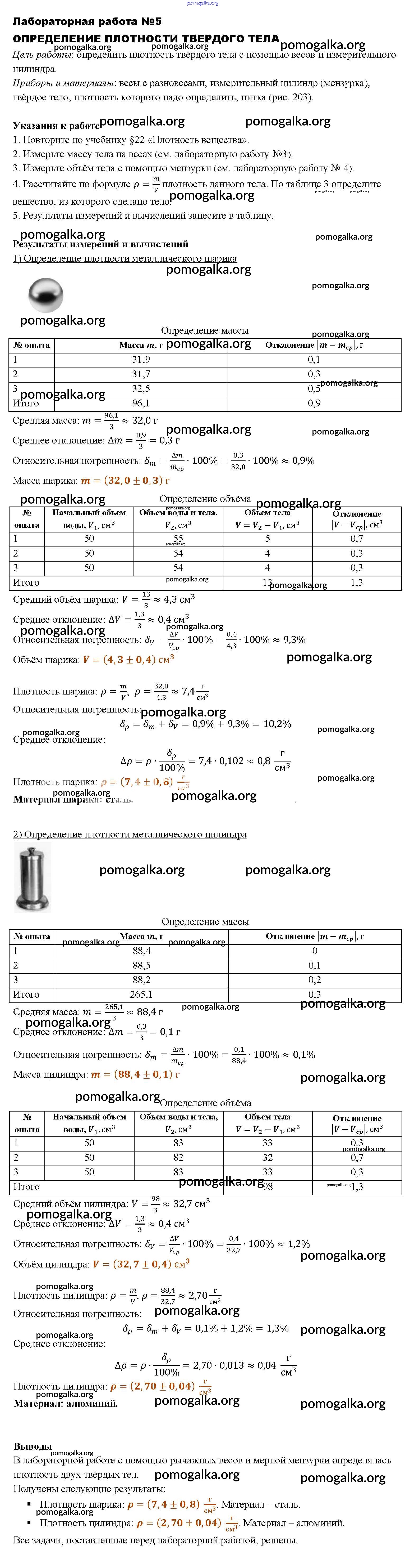 Готовые ответы - Физика 7 класс Перышкин А.В. - лабораторная работа № 5