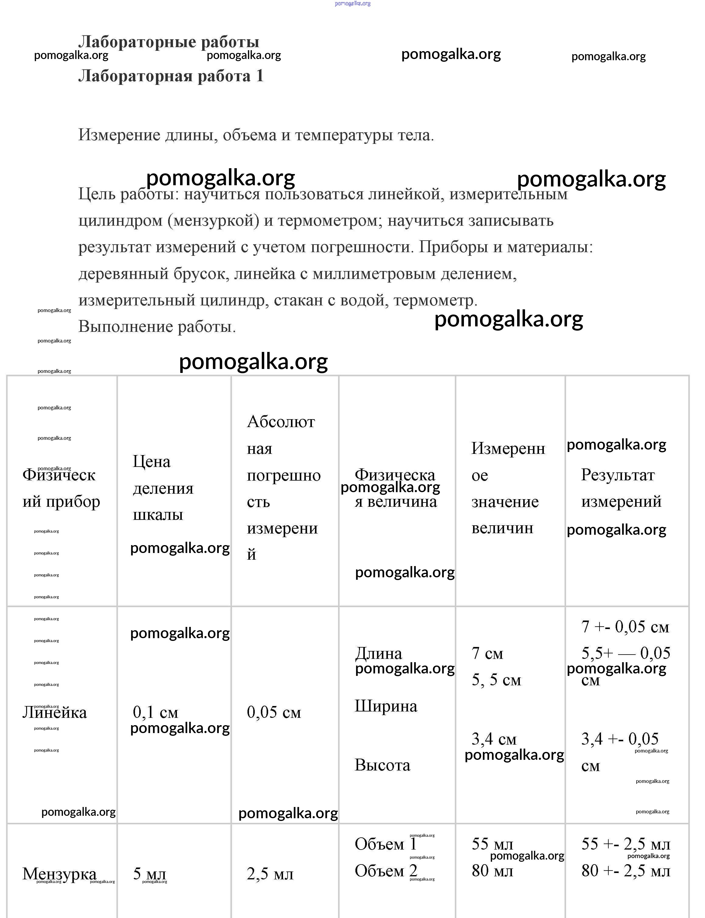 Готовые ответы - Физика 7 класс Пурышева - лабораторные работы 1