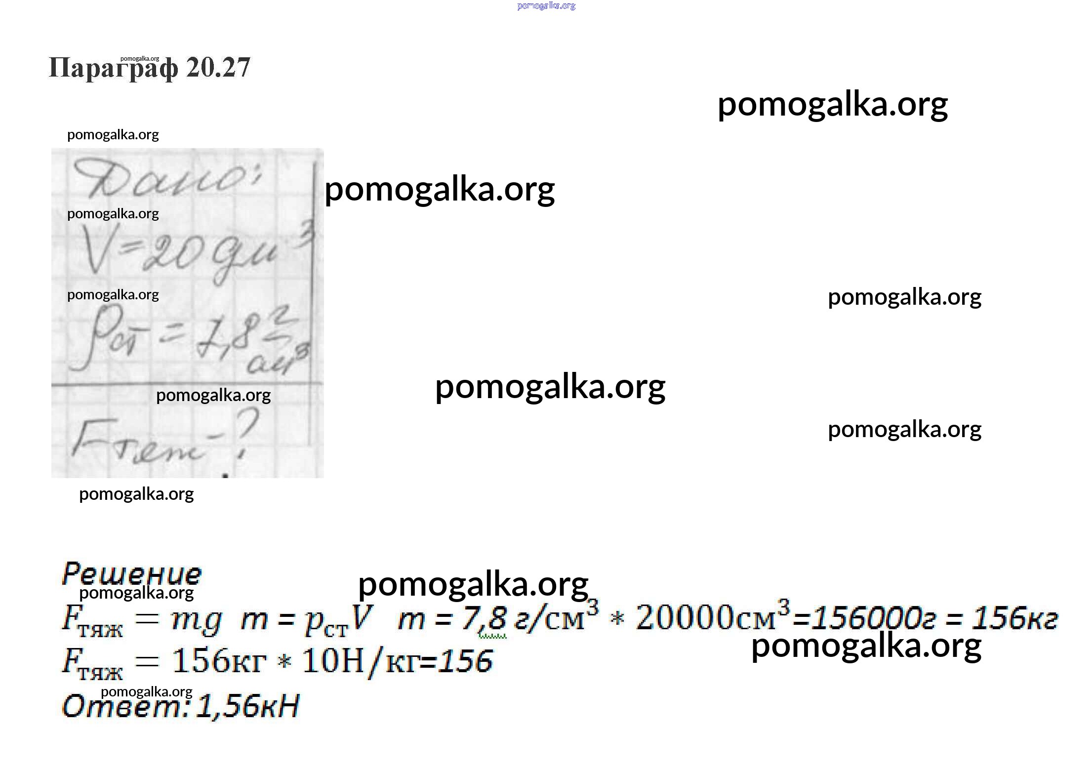 Готовые ответы - Физика 7 класс задачник Генденштейн - параграф 20 27