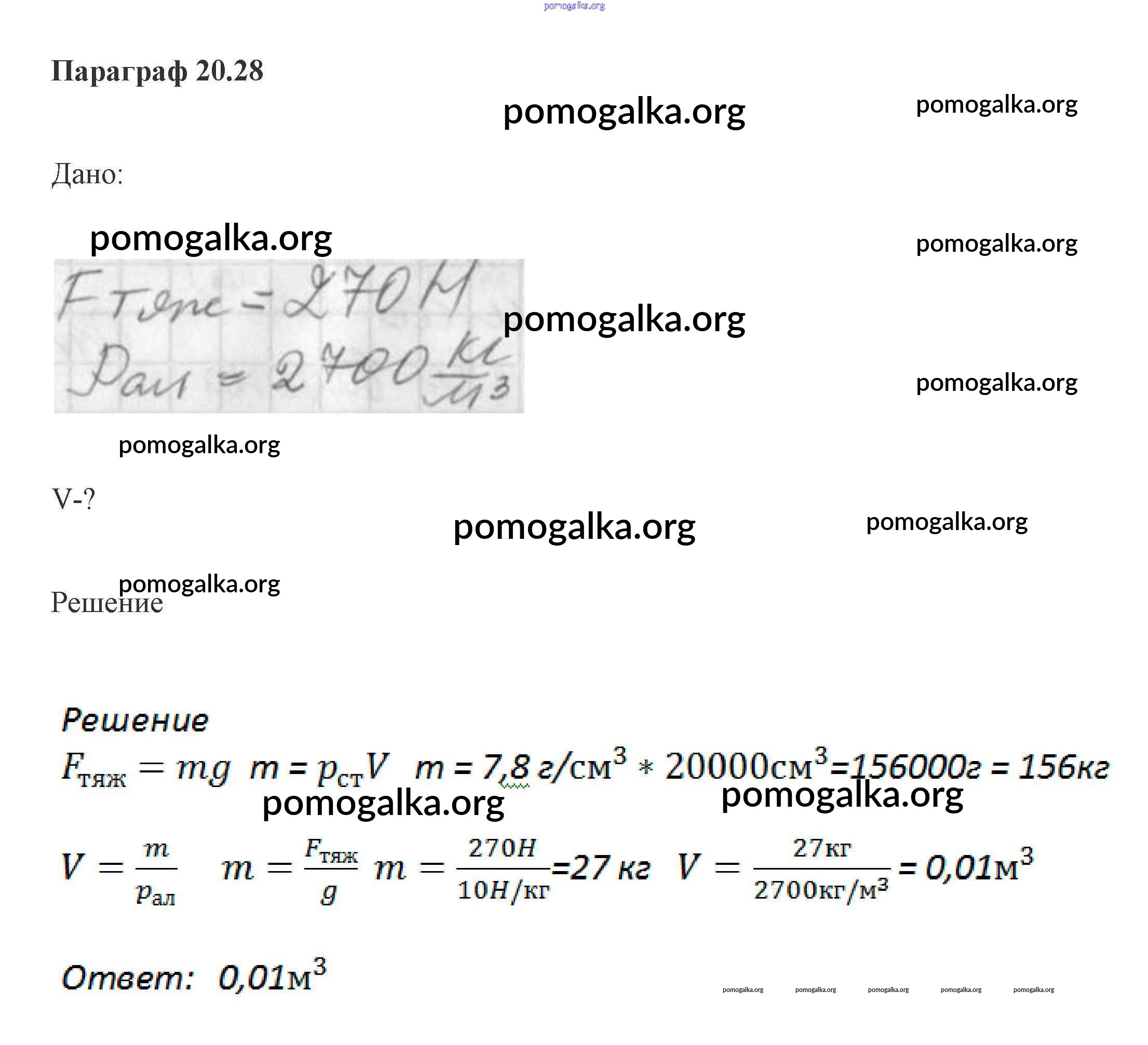 Готовые ответы - Физика 7 класс задачник Генденштейн - параграф 20 28