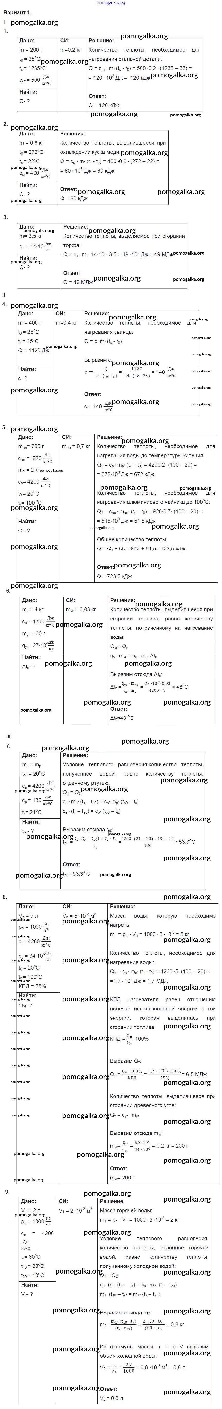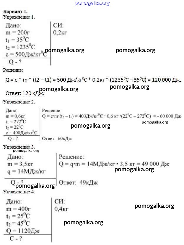 Готовые ответы - Физика 8 класс Дидактические материалы Марон А.Е. (к уч. Перышкина) - кр №1. вариант контрольная работа 1