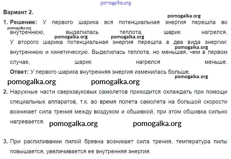 Готовые ответы - Физика 8 класс Дидактические материалы Марон А.Е. (к уч. Перышкина) - ср №1. вариант самостоятельная работа 2