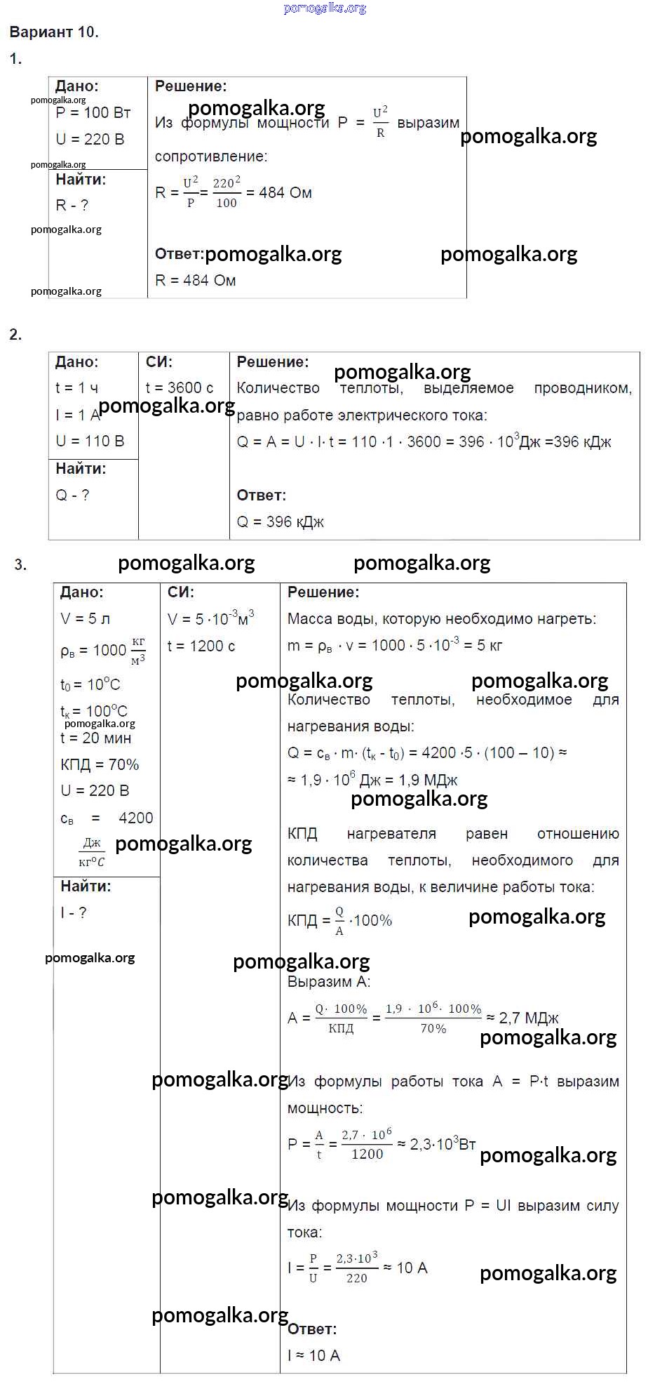 Готовые ответы - Физика 8 класс Дидактические материалы Марон А.Е. (к уч. Перышкина) - ср №10. вариант самостоятельная работа 10