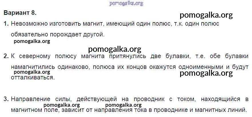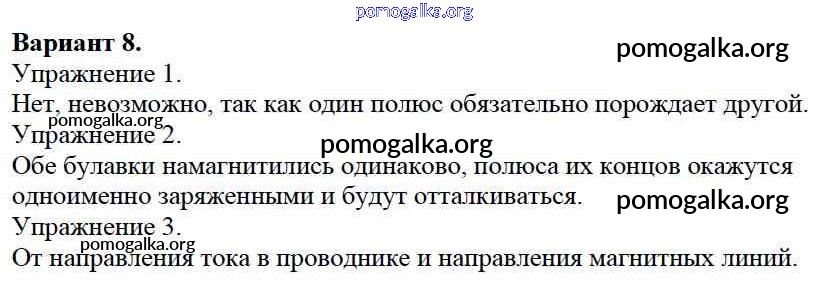 Готовые ответы - Физика 8 класс Дидактические материалы Марон А.Е. (к уч. Перышкина) - ср №11. вариант самостоятельная работа 8