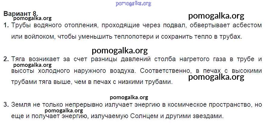 Готовые ответы - Физика 8 класс Дидактические материалы Марон А.Е. (к уч. Перышкина) - ср №2. вариант самостоятельная работа 8