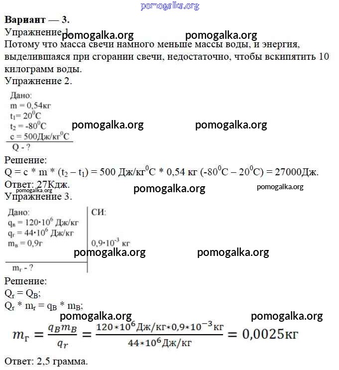 Готовые ответы - Физика 8 класс Дидактические материалы Марон А.Е. (к уч. Перышкина) - ср №3. вариант самостоятельная работа 3