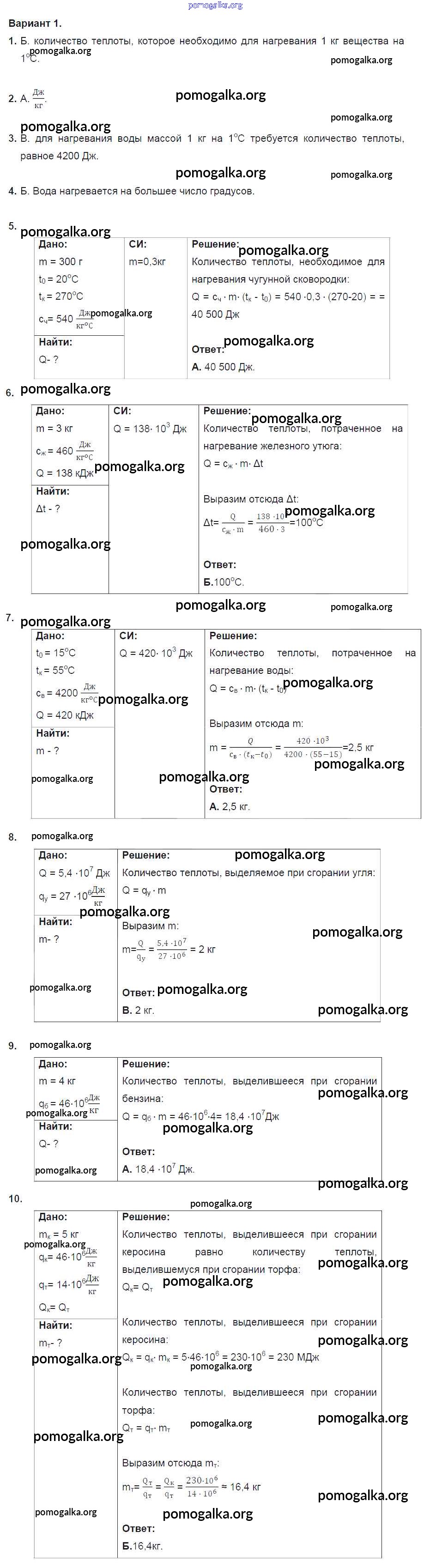 Готовые ответы - Физика 8 класс Дидактические материалы Марон А.Е. (к уч. Перышкина) - тест №2. вариант тест 1