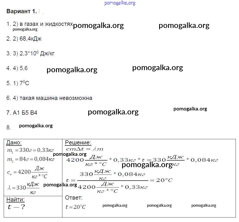 Готовые ответы - Физика 8 класс Контрольные и самостоятельные работы Громцева О.И. (к уч. Перышкина) - глава 1 контрольная работа вариант-1