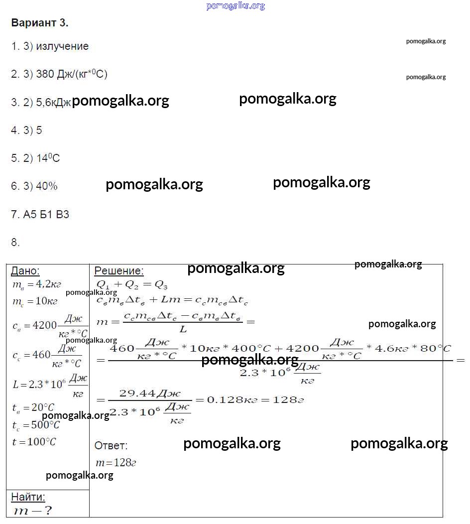 Готовые ответы - Физика 8 класс Контрольные и самостоятельные работы Громцева О.И. (к уч. Перышкина) - глава 1 контрольная работа вариант-3