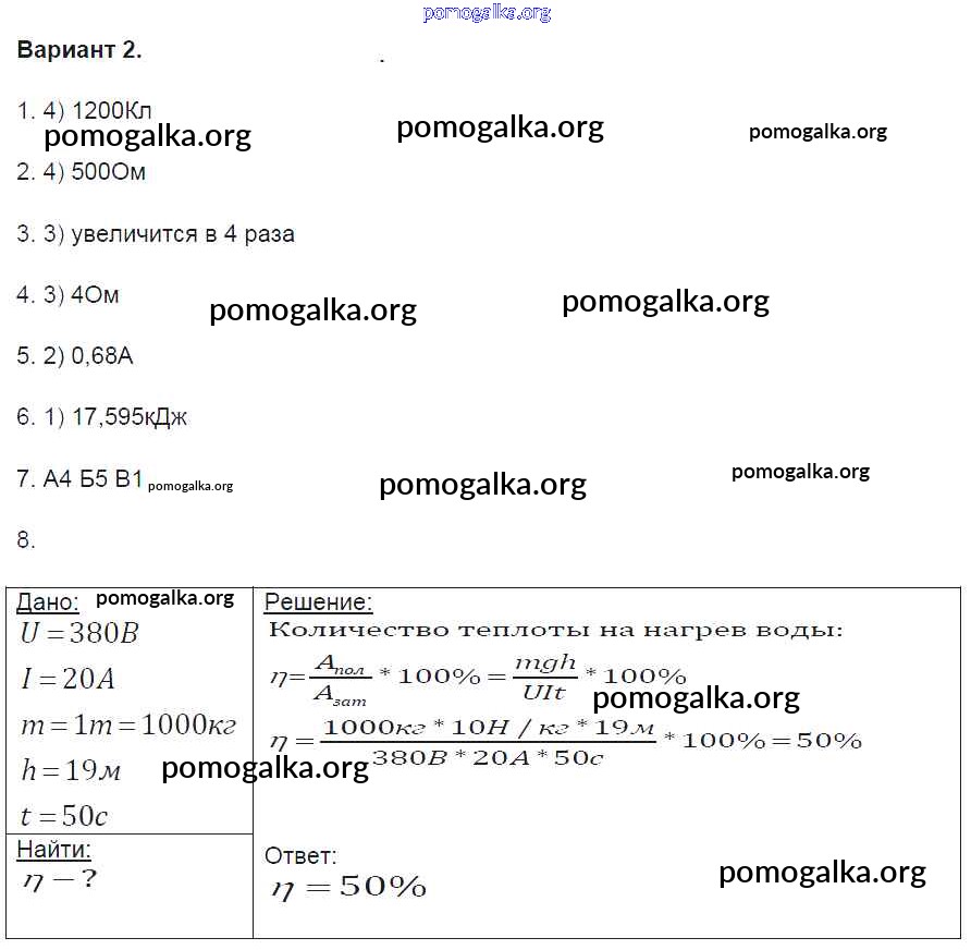 Готовые ответы - Физика 8 класс Контрольные и самостоятельные работы Громцева О.И. (к уч. Перышкина) - 2.2. Электрические явления глава 2 вариант-2