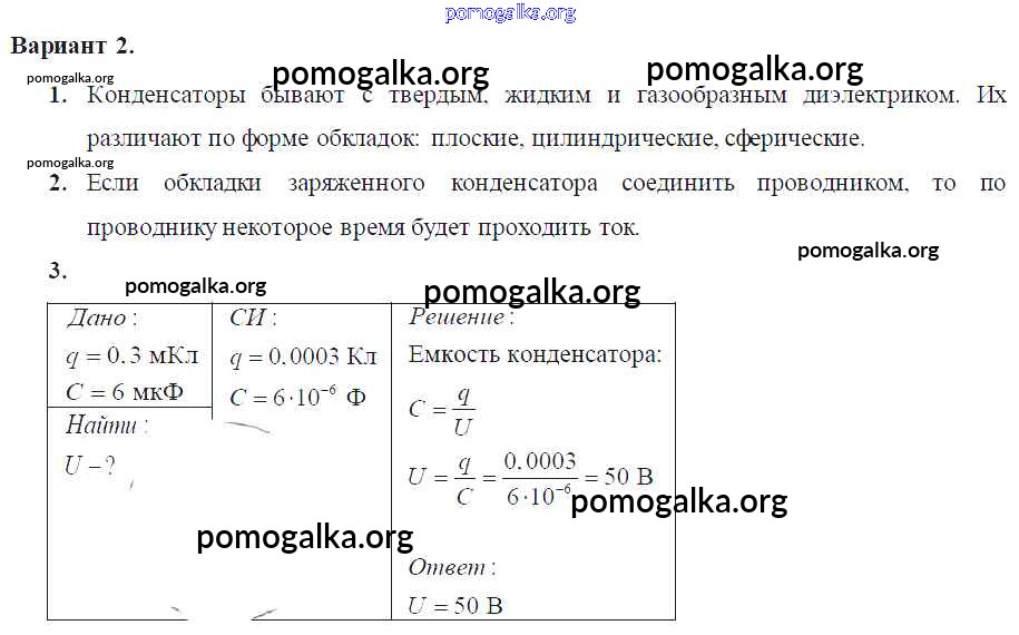 Готовые ответы - Физика 8 класс Самостоятельные и контрольные работы Марон А.Е. (к уч. Перышкина) - ср-№54 самостоятельная работа Вариант-2