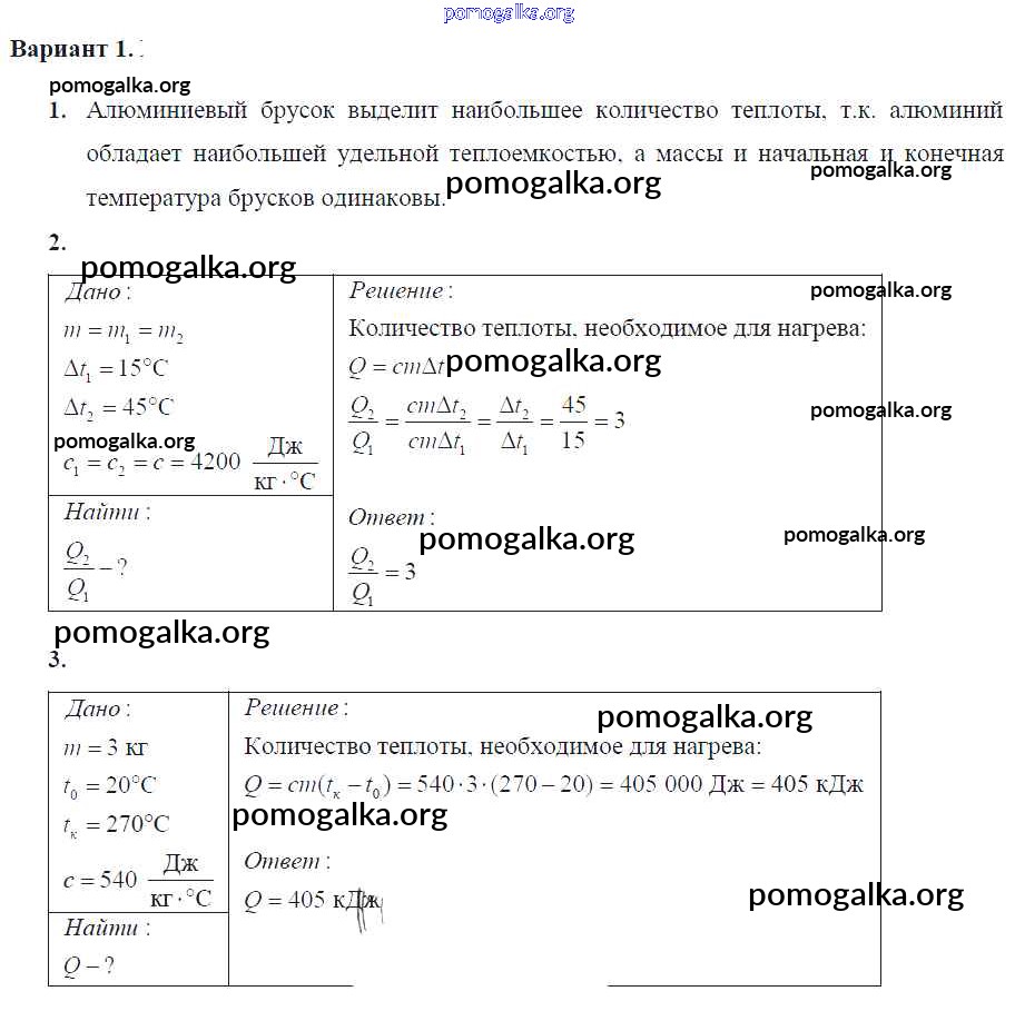Готовые ответы - Физика 8 класс Самостоятельные и контрольные работы Марон А.Е. (к уч. Перышкина) - ср-№9 самостоятельная работа Вариант-1
