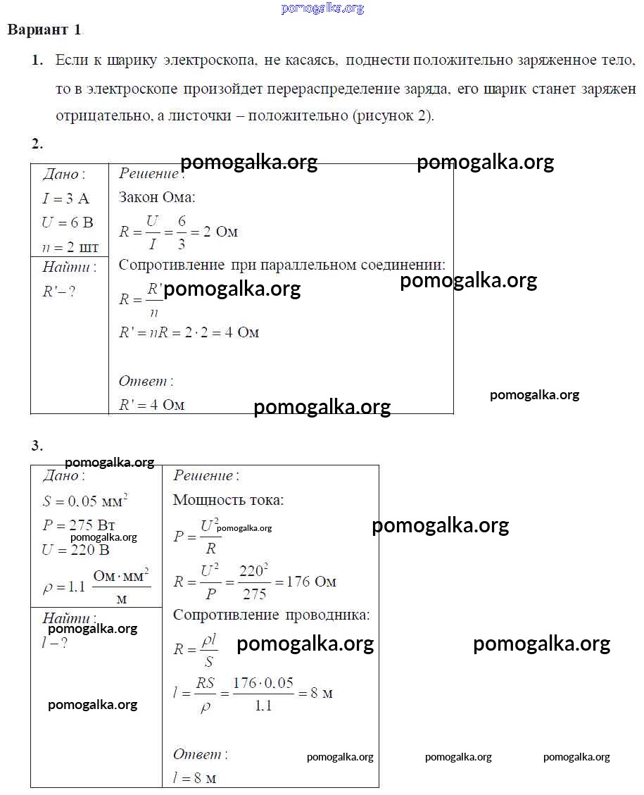 Готовые ответы - Физика 8 класс Самостоятельные и контрольные работы Марон А.Е. (к уч. Перышкина) - кр-№2 контрольная работа Вариант-1
