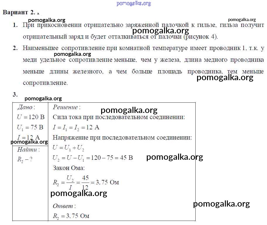 Готовые ответы - Физика 8 класс Самостоятельные и контрольные работы Марон А.Е. (к уч. Перышкина) - кр-№2 контрольная работа Вариант-2