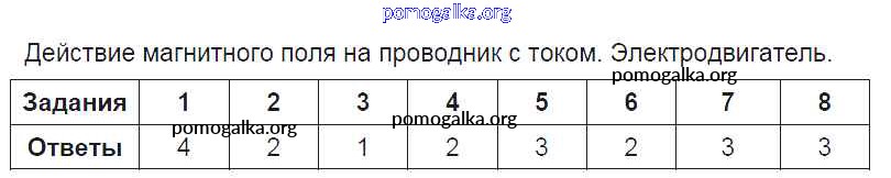 Готовые ответы - Физика 8 класс Тесты Чеботарева А.В. (к уч. Перышкина) - электромагнитные явления 5. Электродвигатель. Действие магнитного поля на проводник с током