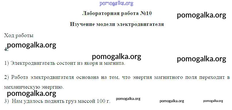 Готовые ответы - Физика 8 класс Громов С.В. - лабораторная работа ЛР №10. Изучение модели электродвигателя