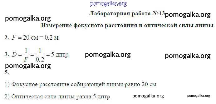 Готовые ответы - Физика 8 класс Громов С.В. - лабораторная работа ЛР №13. Измерение фокусного расстояния и оптической силы линзы