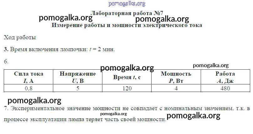 Готовые ответы - Физика 8 класс Громов С.В. - лабораторная работа ЛР №7. Измерение работы и мощности электрического тока