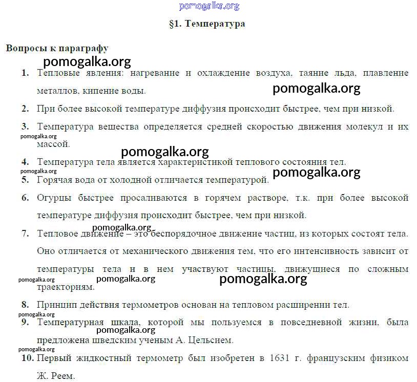 Готовые ответы - Физика 8 класс Громов С.В. - параграф § 1. Температура