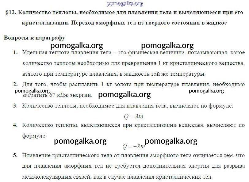 § 12. Количество теплоты, необходимое для плавления тела и выделяющееся при его кристаллизации