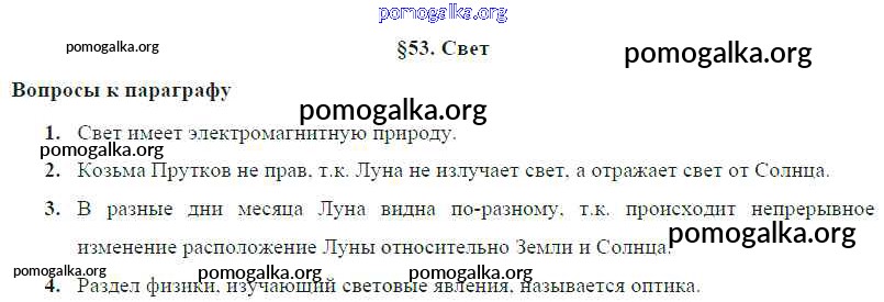 Готовые ответы - Физика 8 класс Громов С.В. - параграф § 53. Свет