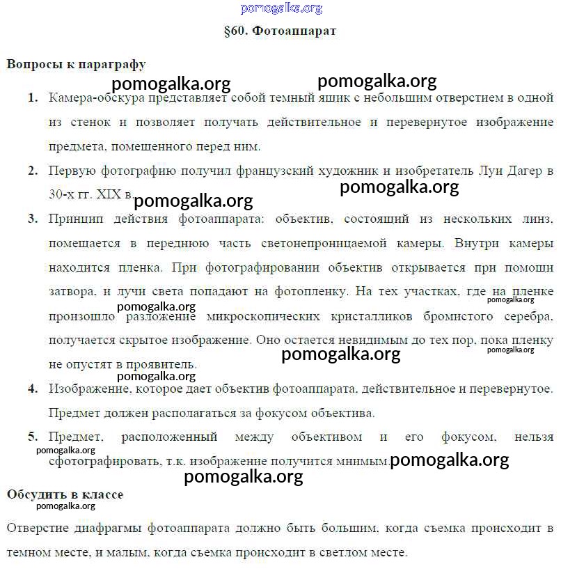 Готовые ответы - Физика 8 класс Громов С.В. - параграф § 60. Фотоаппарат