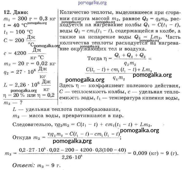 Готовые ответы - Физика 8 класс Исаченкова Л.А. - упражнение 9 12